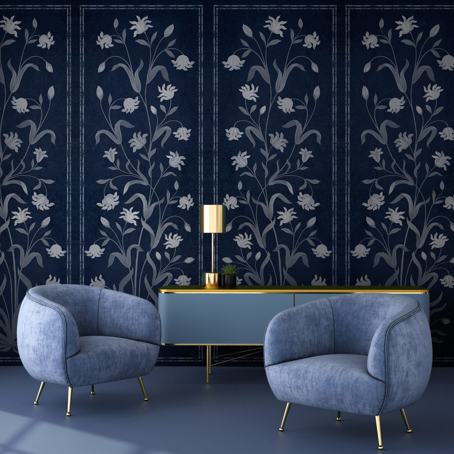 Coordonné’s Daffodil Navy mural is a Floral designed in Blue/Navy tones from the Wander collection.