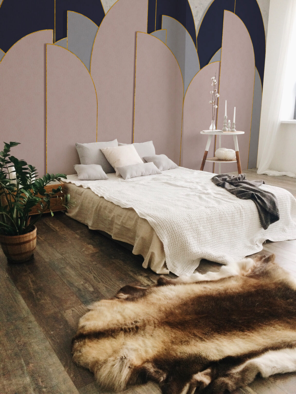 Coordonné’s Pavilon Rose mural is a Geometric designed in Pink/Lilac tones from the Mies collection.