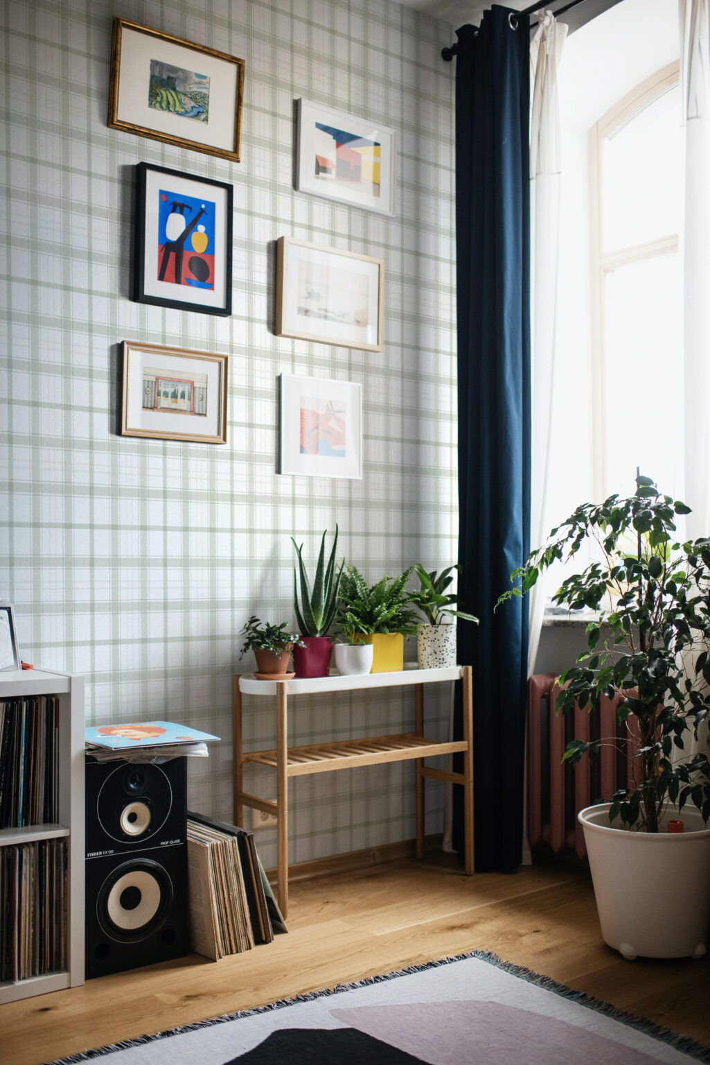 Tartan with 11.5 x 11.5 cm checks in two tones with a kilt-inspired texture.