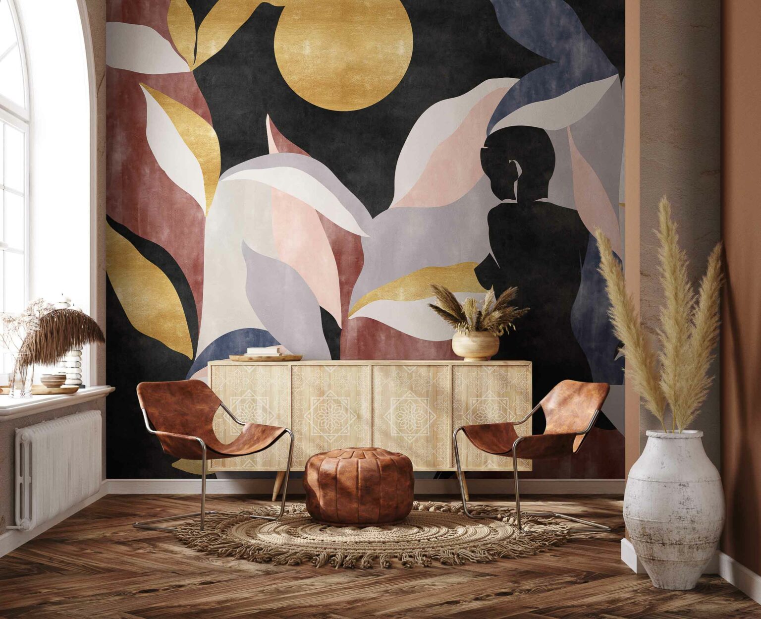Coordonné’s Bahir Dar Gold mural is a Vegetal design in Red/Wine tones from the Wander collection.